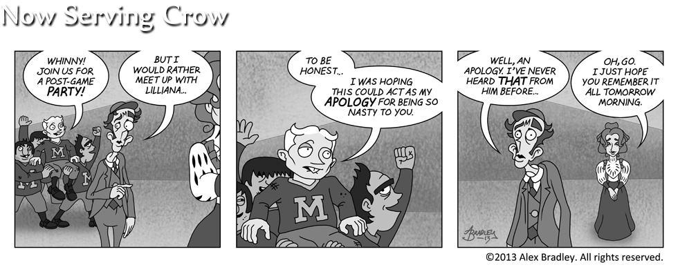 The “meet awkward” is the new “meet cute.” And yes, Winston inadvertently chokes a phrase in Aklo, the ancient tongue of the serpent people preserved by blasphemous cultists everywhere.